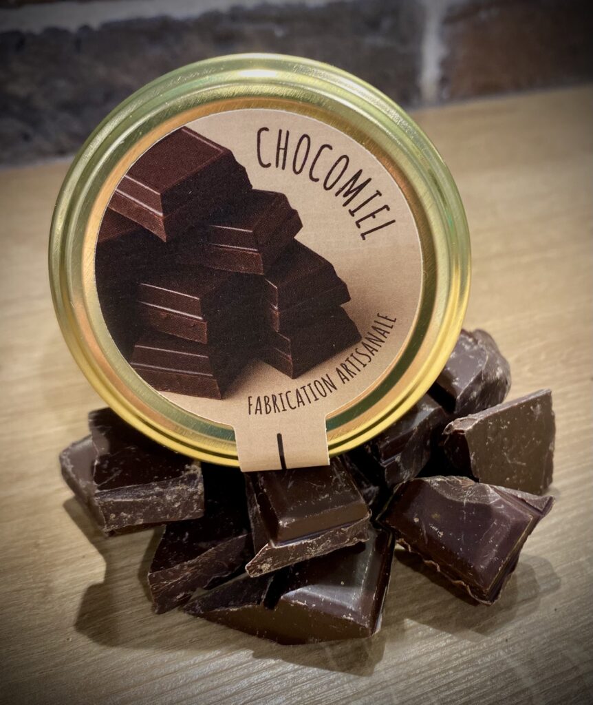 L’alliance du miel, du chocolat noir et des éclats de noisettes torréfiées. Une gourmandise à tartiner ou à déguster à la cuillère.